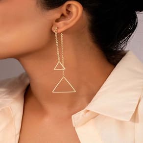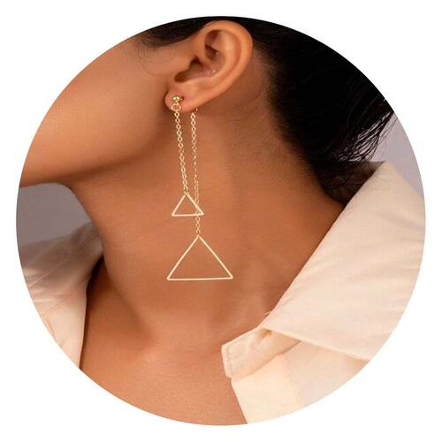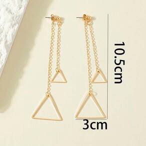 Brinco Longo Corrente Triangular Feminino Dourado Elegante