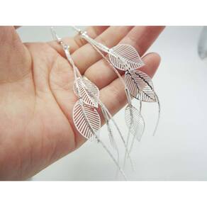 Delicado e marcante, o Brinco Longo com folhas metálicas é uma peça elegante e versátil, ideal para mulheres que desejam um acessório leve, mas com presença. O modelo traz três folhas estilizadas com acabamento em prata, suspensas por correntes finas que alongam o visual e conferem um toque moderno.