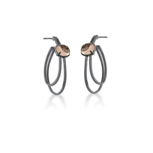 Brinco Meia Argola Duas Voltas Cabochão Morganita Banhada A Ródio Negro Brinco Meia Argola Banhado a Ródio Negro duas voltas lisas com Cabochão Oval Morganita. Lindo para o seu dia a dia com estilo. Arrase