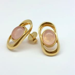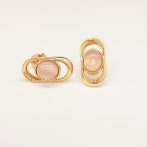 Brinco Moderno Quartzo Rosa Dourado Semijoia Lizzy Fatin