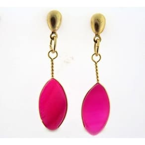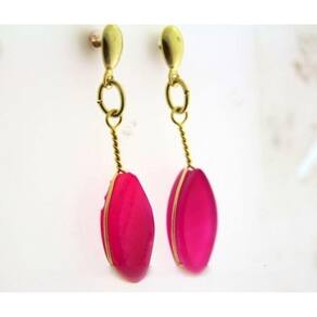 Brinco Pedra Agata Rosa Lapidado Navete e acabamento folha com pino e tarracha dourado, lapidação manual totalmente artesanal. A montagem é feita em banho flash dourado