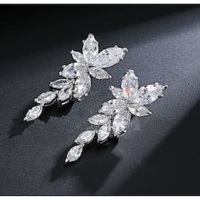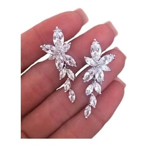 Brinco banhado a ouro branco com pedras de zircônia. 3,8 cm de comprimento. 1,6 cm de largura. Ideal para noivas, madrinhas, debutantes, formaturas e festas em geral. Acompanha caixinha de presente. Simplesmente LINDO Marca: De Castro Joias Ean: 7891431179006