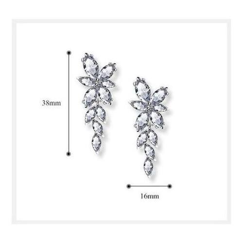 Brinco banhado a ouro branco com pedras de zircônia. 3,8 cm de comprimento. 1,6 cm de largura. Ideal para noivas, madrinhas, debutantes, formaturas e festas em geral. Acompanha caixinha de presente. Simplesmente LINDO Marca: De Castro Joias Ean: 7891431179006