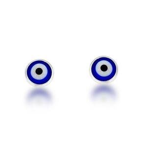 Brinco Olho Grego Sintético Azul escuro Prata 925 8mm -