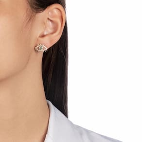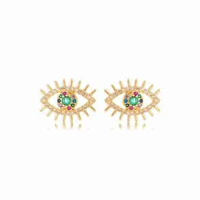 Brinco olho vazado cravejado color banhado em ouro. Esta peça está incrivelmente moderna, charmosa e exuberante. Você ainda linda do seu jeito sempre.