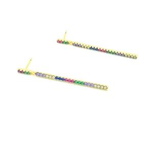 Brinco Palito Cravejado com Zircônia Colorido folheado ouro 18k