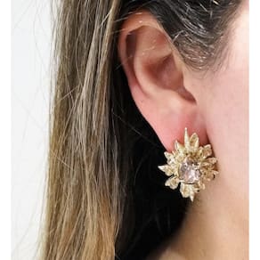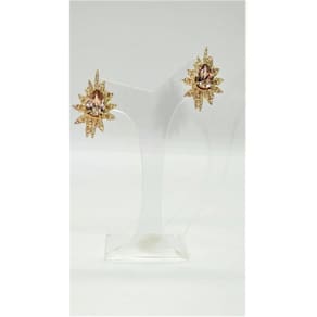 Brinco Feminino Folheado a Ouro Champanhe e Pedra em Cristal. Design diferenciado, com brinco segundo furo fica ainda mais lindo, Arrase