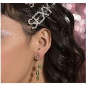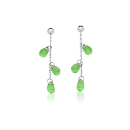 Brinco pêndulo com Cabochões em Gota Verde Zircônias Verdes Banhado a Ródio. Semi Joia linda. Adquira o seu e arrase