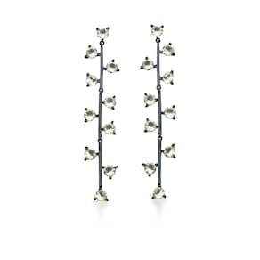 Brinco Pêndulo com Cristais Prasiolita Banhado a Ródio Negro. Design diferenciado e qualidade que você vai amar. Arrase