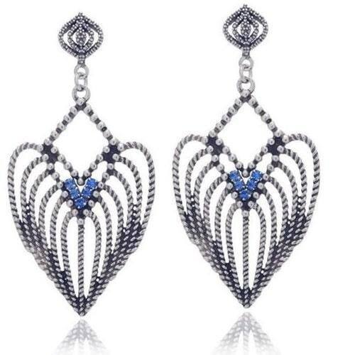 Brinco Feminino Pêndulo com Zircônias Azuis e Folheado a Prata Envelhecida. Dê um up no visual com mais glamour e sofisticação no seu dia a dia Arrase
