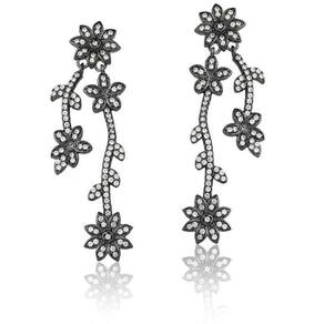 Brinco Feminino Pêndulo Flores com Zircônias Brancas e Banhado a Ródio Negro. Acessórios Femininos deixa o visual ainda mais lindo e sofisticado. Arrase
