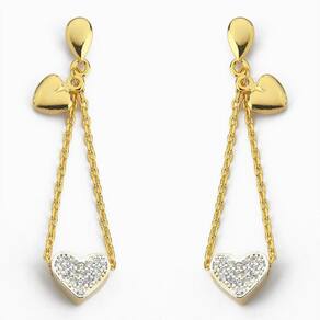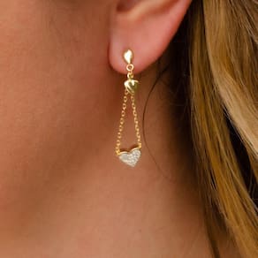 Brinco Pendurado De Corrente Coração Cravejado Zircônia Brinco Pendurado de corrente com detalhe em Coração Cravejado com Zircônia - Brinco Medio, com corrente e coração na ponta