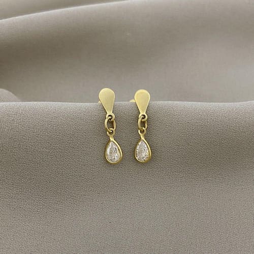 Brinco Pendurado Ponto de Luz de Zircônia Banhado a Ouro
