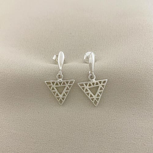 Brinco Pendurado Triângulo Vazado Detalhado em Prata 925