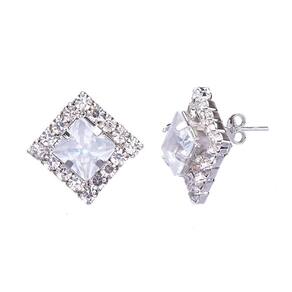 Brinco Pequeno Quadrado Strass Folheado A Metalico