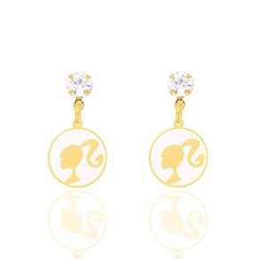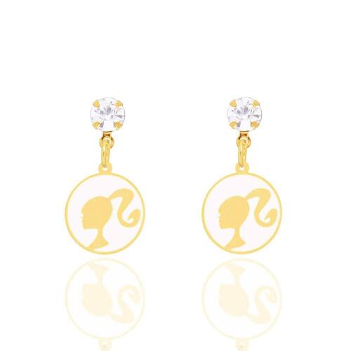 Brinco Ponto de Luz Barbie Resina Folheado A Ouro 18k