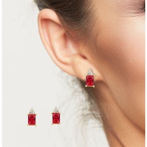 Brinco Ponto de Luz Colorido Banhado a Ouro 18k Vermelha -