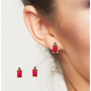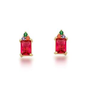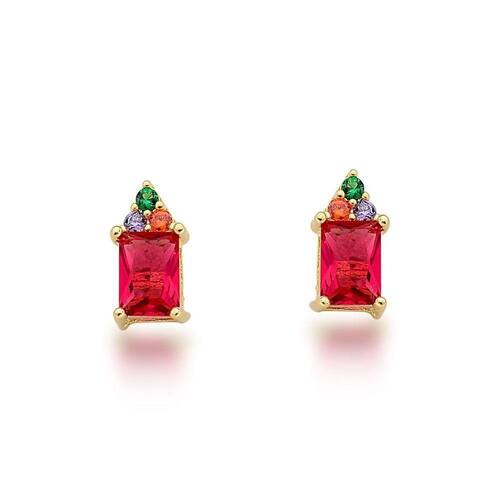 Brinco Ponto de Luz Colorido Banhado a Ouro 18k Vermelho com colorido -