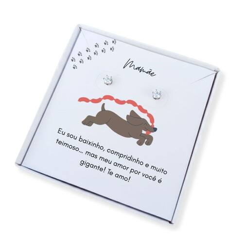Delicado, moderno e cheio de significado! O Brinco Ponto de Luz em aço inoxidável é a escolha perfeita para presentear aquela mãe apaixonada por seu dachshund (salsicha). Acompanha uma linda caixa presente personalizada com frase para Mãe de Salsicha, tornando o momento ainda mais especial e emocionante.
