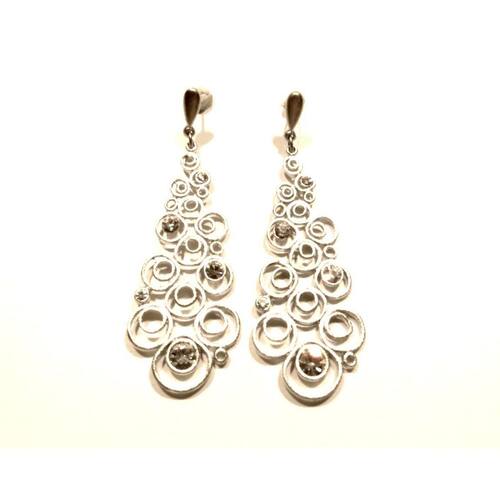Brinco Feminino Prateado Fosco com Pedras, uma peça linda e versátil para seu guarda roupa, um curinga para você arrasar no look. Arrase