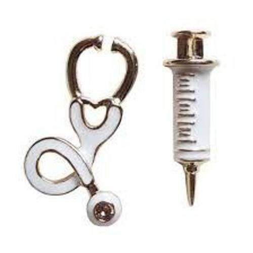 Brinco Profissões Enfermagem Esteto Seringa Folheado A Ouro.