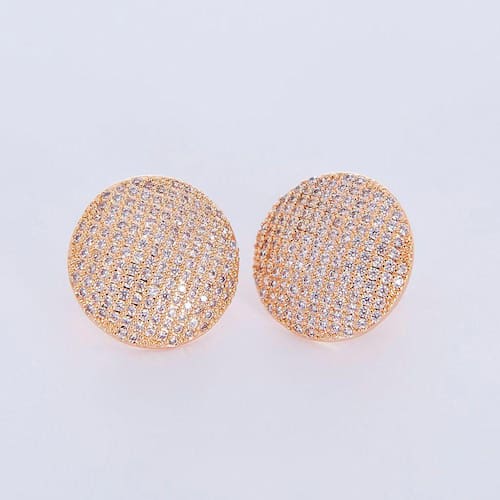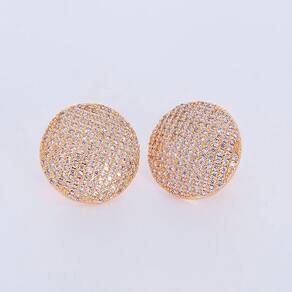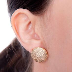 Um par de brincos em formato redondo, banhado a ouro e cravejado de microzircônias cristal. É delicado e luxuoso lhe deixando em destaque em qualquer situação.