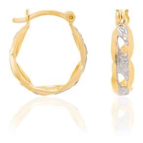Brinco argola Rommanel folheada a ouro 18k com laterais onduladas, detalhes vazados e aplique de ródio.
