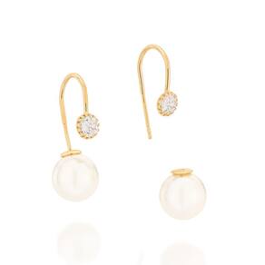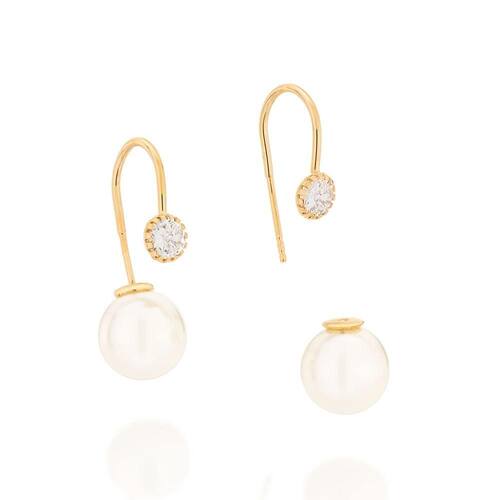 Brinco rommanel zircônias e pérolas sintéticas folheado a ouro 18k 526044 brinco formato quadrado com cristal de 6,00mm e pérola sintética de 7,00mm med 1,2 cm