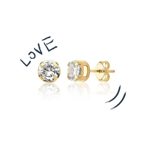Cada pino é composto por um Solitário de Cristal em cravação Elegante, Brinco Solitaire Revestido em Ouro. Aprimora qualquer visual com seu Design Clássico e Elegante.