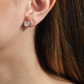 Cada pino é composto por um Solitário de Cristal em Cravação Elegante, Brinco Solitaire Revestido em Ródio. Aprimora qualquer Visual com seu Design Clássico e Elegante.
