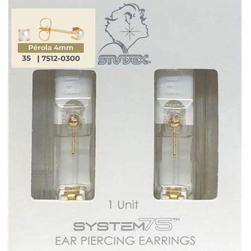 Brincos System 75 Studex, em aço inox, esterilizados. Folheados a Ouro 24k. Sistema descartável. Dispositivo acompanha o brinco. Colocação rápida, precisa e indolor, sem incomodar a criança. Para bebês e crianças até 10 anos. Dispositivo silencioso, para não assustar a criança. O brinco é encabulado e esterilizado individualmente, impossibilitando o contato manual com as partes perfurantes, sendo assim, muito higiênico. Elaborado em puro aço de grau médico, minimizando ao máximo as reações alérgicas.