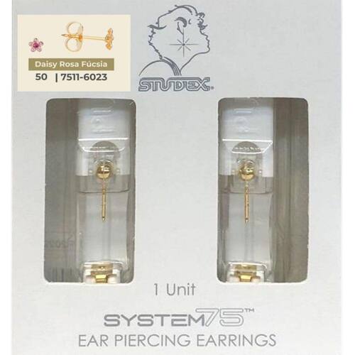 Brincos System 75 Studex, em aço inox, esterilizados. Folheados a Ouro 24k. Sistema descartável. Dispositivo acompanha o brinco. Colocação rápida, precisa e indolor, sem incomodar a criança. Para bebês e crianças até 10 anos. Dispositivo silencioso, para não assustar a criança. O brinco é encabulado e esterilizado individualmente, impossibilitando o contato manual com as partes perfurantes, sendo assim, muito higiênico. Elaborado em puro aço de grau médico, minimizando ao máximo as reações alérgicas.
