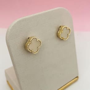 Brinco Trevo Rente a Orelha Madreperola Banhado a Ouro 18k Madrepérola -