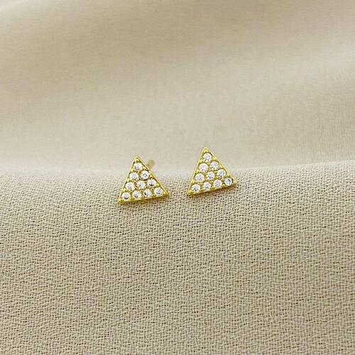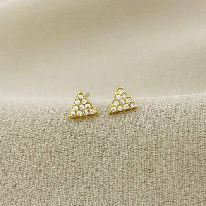 Brinco Triângulo Cravejado de Zircônia Banhado a Ouro