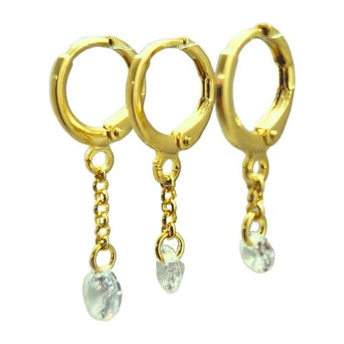 Brinco trio feminino folheado a ouro argola e pedra zircônia