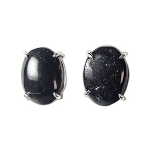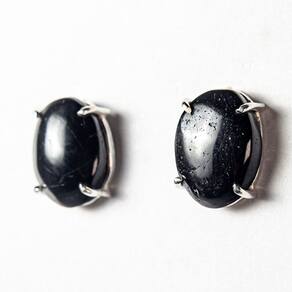 Brinco Topinho Pedra Turmalina Preta Natural Cabochão Oval 12mm Lisa montado na Garra Prata 950, Pedra Natural de Boa Qualidade mineral não é pedra de laboratório como esta cheio o mercado, a montagem Prata 950 com garras para segurar a Gema. Lapidação da Pedra em formato de Gota com Acabamento Liso e Base reta.