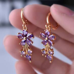 Os brincos pendentes de zircônia com strass em formato de flor roxo são uma escolha encantadora para adicionar um toque de elegância e sofisticação ao seu visual. Com seu design delicado e brilhante, esses brincos são perfeitos para diversas ocasiões, desde eventos formais até encontros casuais.