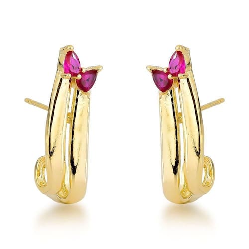 Brincos Banhados a Ouro 18k Detalhe em Zircônia para Sofisticação Vermelha - Brincos Banhados a Ouro 18k Detalhe em Zircônia para Sofisticação