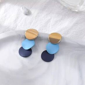 Lindo par de brincos, modelo geométrico, com circulos, com tons de azul e dourado, perfeito para qualquer ocasião, com a elegância da beleza feminina. Peças de excelente qualidade, com muita personalidade. Detalhes: material de liga de zinco, de excelente qualidade. Tamanho: 5 cm x 2 cm origem: produto importado