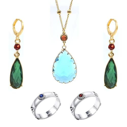 - O pacote inclui 1 par de brincos Howl's, 1 colar Howl's e 2 anéis Howl's (1 vermelho e 1 azul).