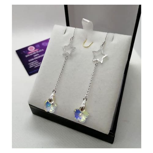 Brincos com pingente de flores de cristal - prata esterlina 925 - lindas joias Esses lindos brincos têm um brilho que você vai adorar. Inclui caixa de veludo para presente, minijoias, tecido de polir, bolsa de organza e sacola de presente. DICAS PARA CUIDAR DE SUAS JOIAS As joias são produtos delicados, por isso precisam de cuidados especiais. Limpe-os frequentemente com um pano macio e seco para manter o acabamento brilhante autêntico. Guarde suas joias em estojos ou bolsas separadas para evitar atrito e não arranhar. Remova as peças antes de lavar as mãos, nadar ou aplicar produtos de cuidado corporal, como perfumes, spray de cabelo, sabonetes e loções que podem danificar o metal, além de causar descoloração e perda de brilho em cristais ou zircões. Evite o contato com água e umidade. Evite solavancos que possam causar arranhões, lascas ou vidros e zircões. Não pratique esportes com suas joias, pois a transpiração pode mudar de cor. Se você estiver usando perfume, colônia ou cremes, eles não devem ter contato com suas joias.
