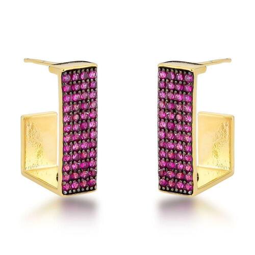 Brincos De Argola Com Zircônias Rubi E Banho De Ouro 18k - Estilo Moderno Brincos de Argola com Zircônias Rubi e Banho de Ouro 18k - Estilo Moderno - Brincos de Argola com Zircônias Rubi e Banho de Ouro 18k - Estilo Moderno Brincos Elegantes Banhados a Ouro 18k com Zircônias Rubis, uma joia de luxo acessível que une sofisticação e praticidade. Com um design moderno de argola, são adornados com zircônias rubi radiantes, garantindo durabilidade e um brilho comparável ao dos diamantes. Leves e confortáveis, fecham de forma segura, ideais para elevar qualquer visual com um toque de requinte.