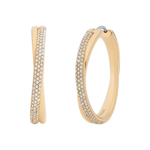 Michael Kors Brincos de argola dourados para mulheres; brincos femininos de aço inoxidável; joias femininas, Aço inoxidável, Sem pedra preciosa - A coleção de joias Michael Kors é projetada para um apelo atemporal. Feito de materiais hipoalergênicos como aço inoxidável e latão com detalhes brilhantes, ricos em detalhes com qualidade duradoura. - Faça uma declaração com nossos brincos luminosos de argola dourada de cristal pavé. Este par ultra glamouroso é definido por seu apelo ousado e luxuoso que dá um toque especial a esta silhueta atemporal. - Estes brincos de argola apresentam aço inoxidável dourado e fechos de dobradiça. - Comprimento 35 mm Largura 6 mm - Fecho: Dobradiça - Acabamento: Polido