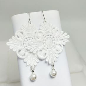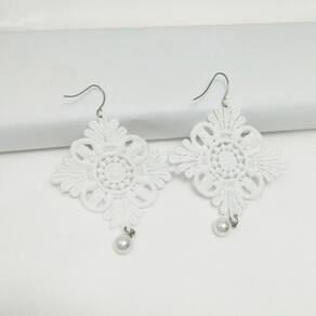 Brincos de Crochê Femininos Folhas Pérola Moda Mulheres - Branco
