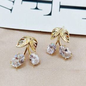 Cada brinco apresenta duas cerejas estilizadas, adornadas com strass brilhantes que capturam a luz de forma encantadora, destacando-se em qualquer ocasião especial. As folhas delicadas, também enfeitadas com detalhes de strass, completam o design, proporcionando um toque de frescor e natureza ao conjunto.