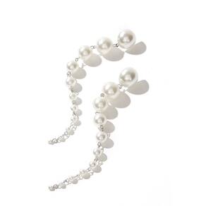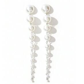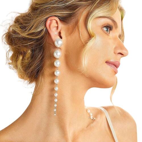 Brincos de Pérolas Brancas Longos Prata Moda Femininos Luxo