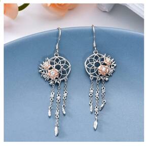 Brincos maravilhosos em prata 925 Dream Catcher com proteção galvanizada em ródio Tamanho: altura: 5 cm Largura: 1,5 cm Modelo exclusivo, contém zircão brilhante, para uso em qualquer ocasião, ótimo presente, para meninas, adolescentes, mulheres adultas, ficam bem com qualquer uso, muito confortáveis de transportar, antialérgicos, sem níquel, não poluem. Fácil de manter e limpar\ nInstruções de limpeza: Limpe com um pano prateado para polir joias, pelo menos uma vez por semana, para manter as joias brilhantes e evitar a deterioração\ nRecomendação de uso: Não use produtos de prata em praias, piscinas, chuveiros, pois a água contém cloro ou outros minerais que afetam a aparência das joias. Os anéis incluem uma elegante caixa de veludo