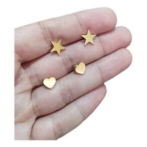 - Par de brincos infantis em aço cirúrgico banhado a ouro