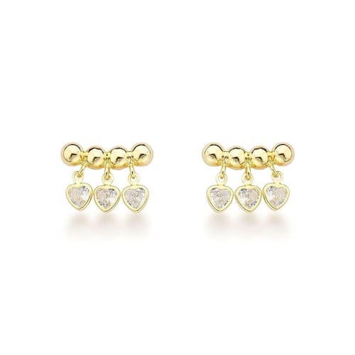 Brincos Femininos Banhados a Ouro 18k com Esferas e Corações de Zircônia - Brincos Femininos Banhados a Ouro 18k com Esferas e Corações de Zircônia