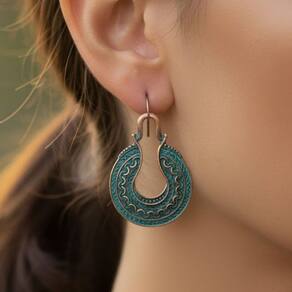 Com design circular e acabamento em tom de cobre antigo com detalhes azul turquesa, essas peças trazem uma estética boêmia e sofisticada.